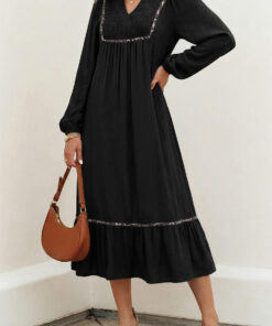 - This long dress for fall is sure to give a flattering silhouette.