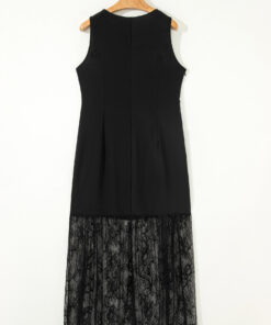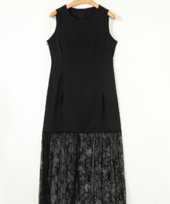 - Solid color highlights the elegance of this lace patchwork long dress.