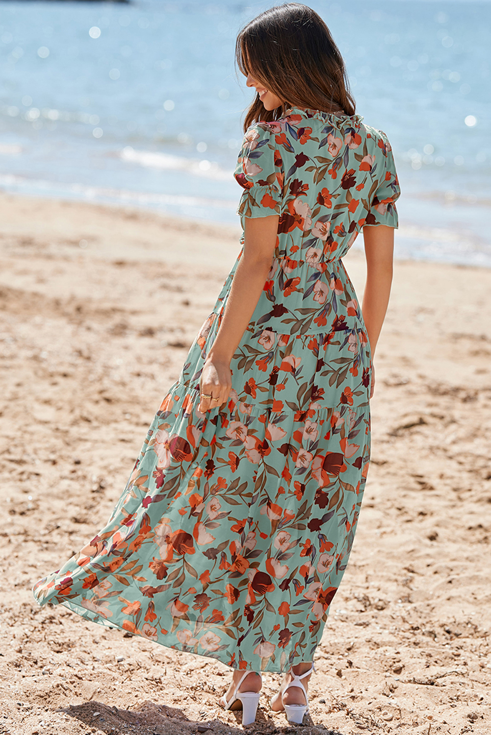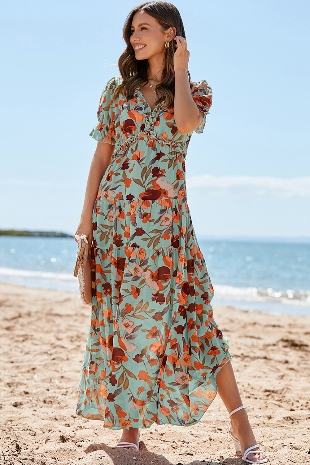 - Frilled design makes the maxi dress more elegant and sweet