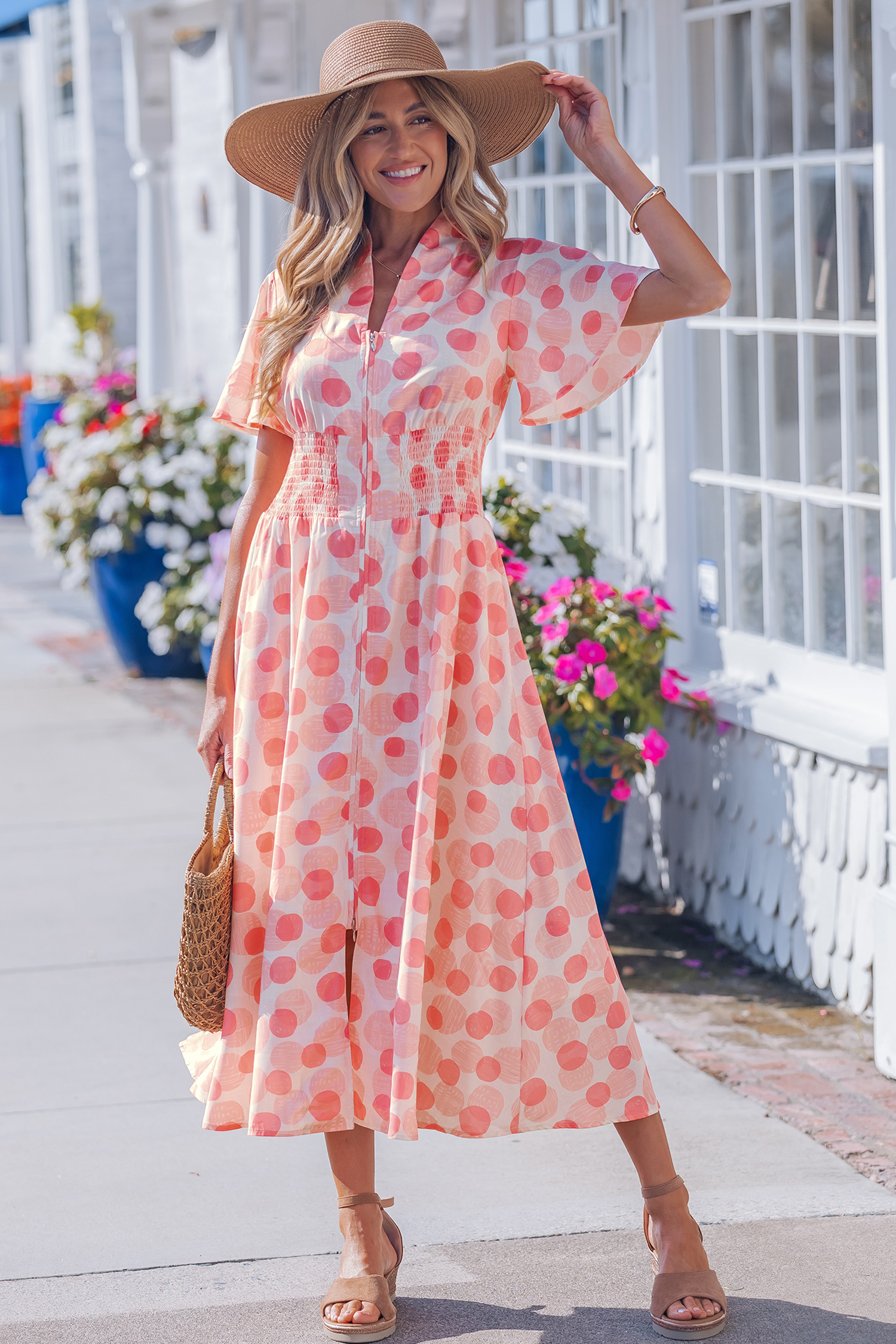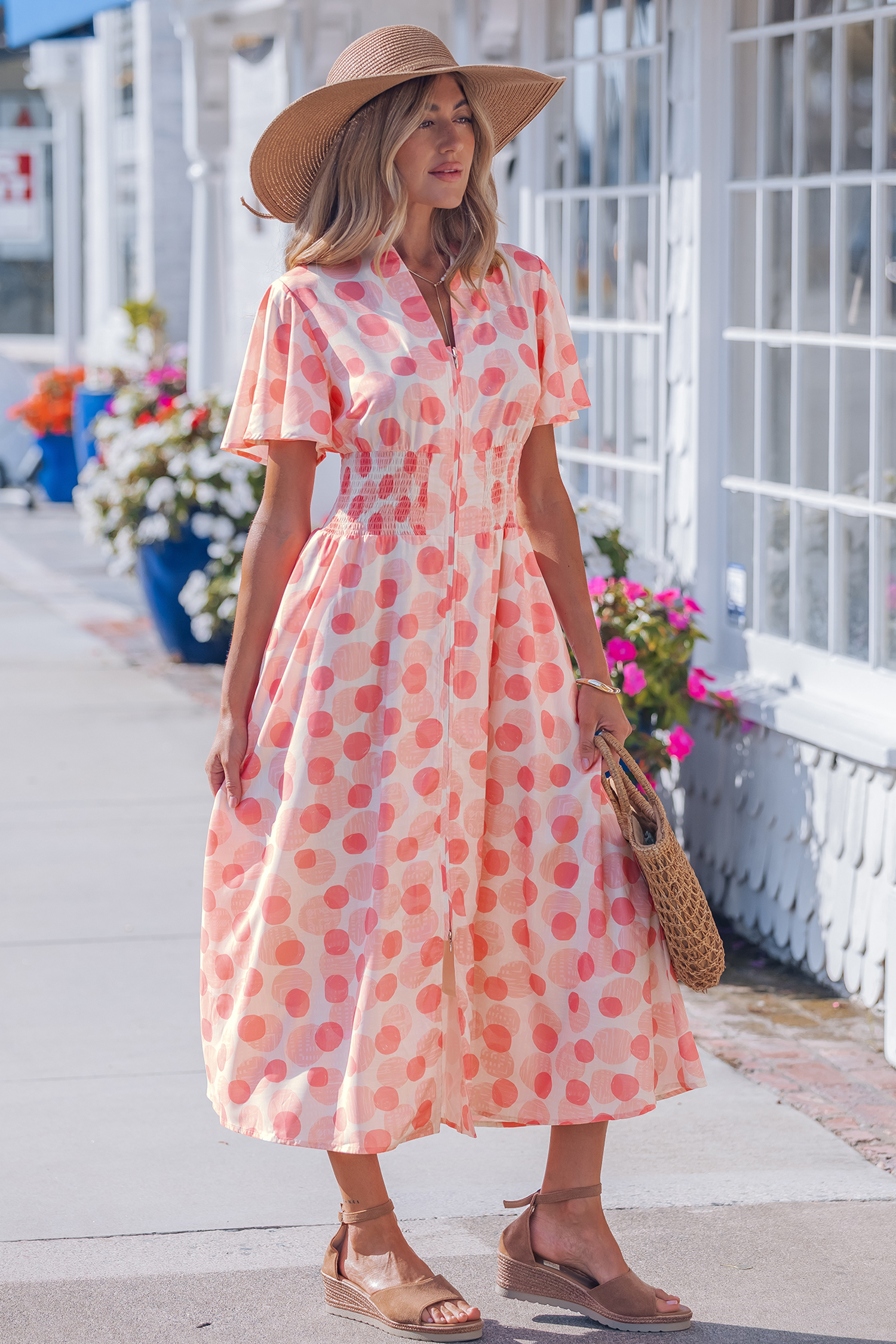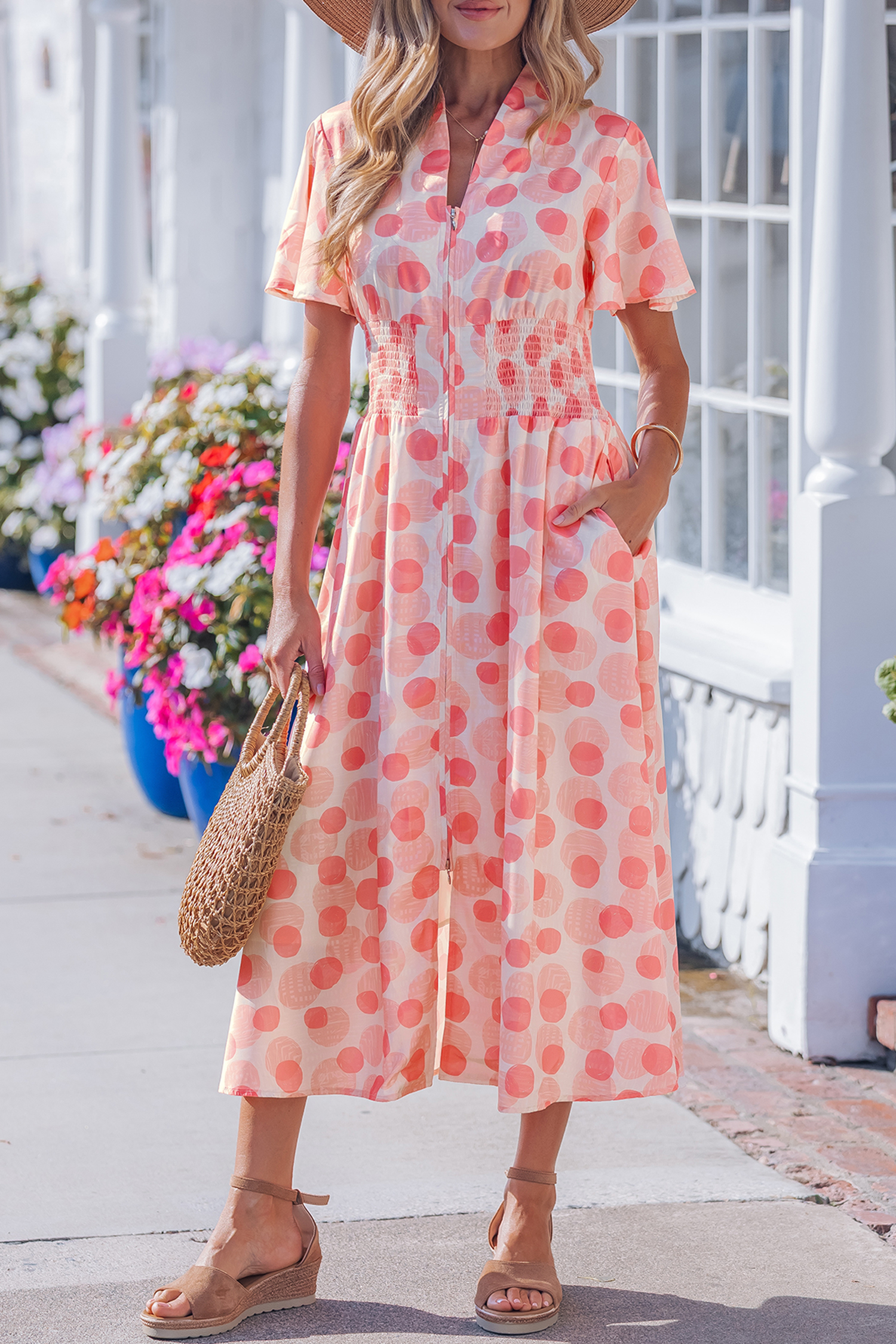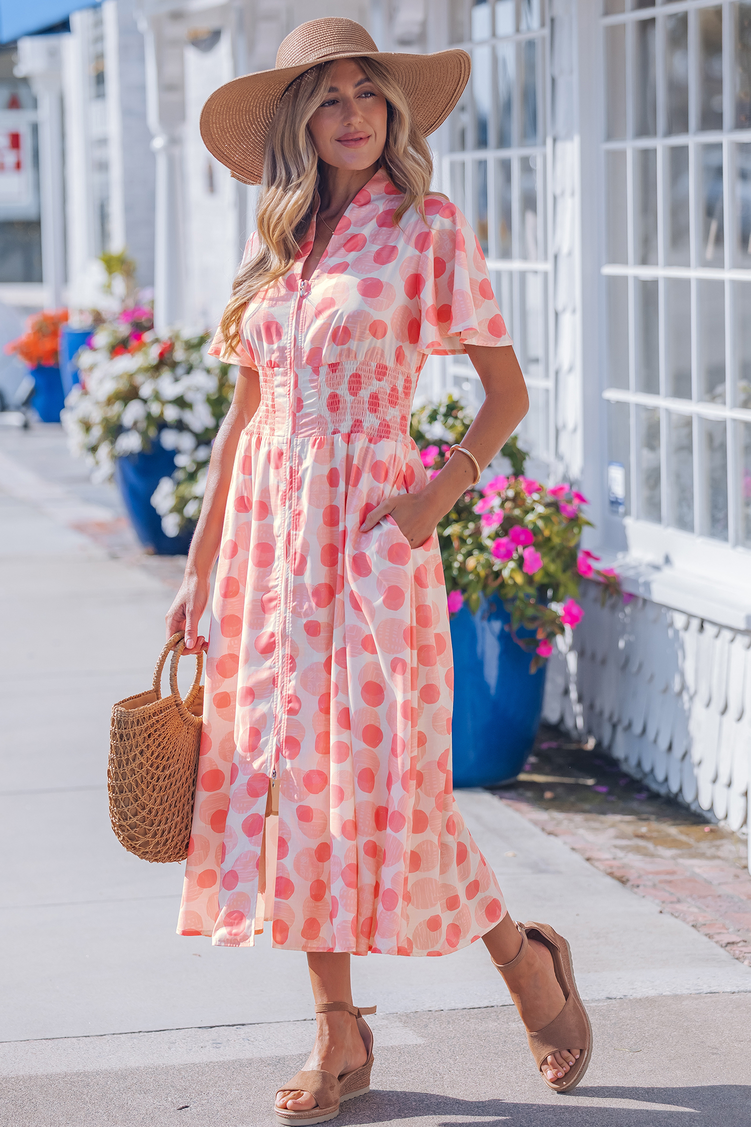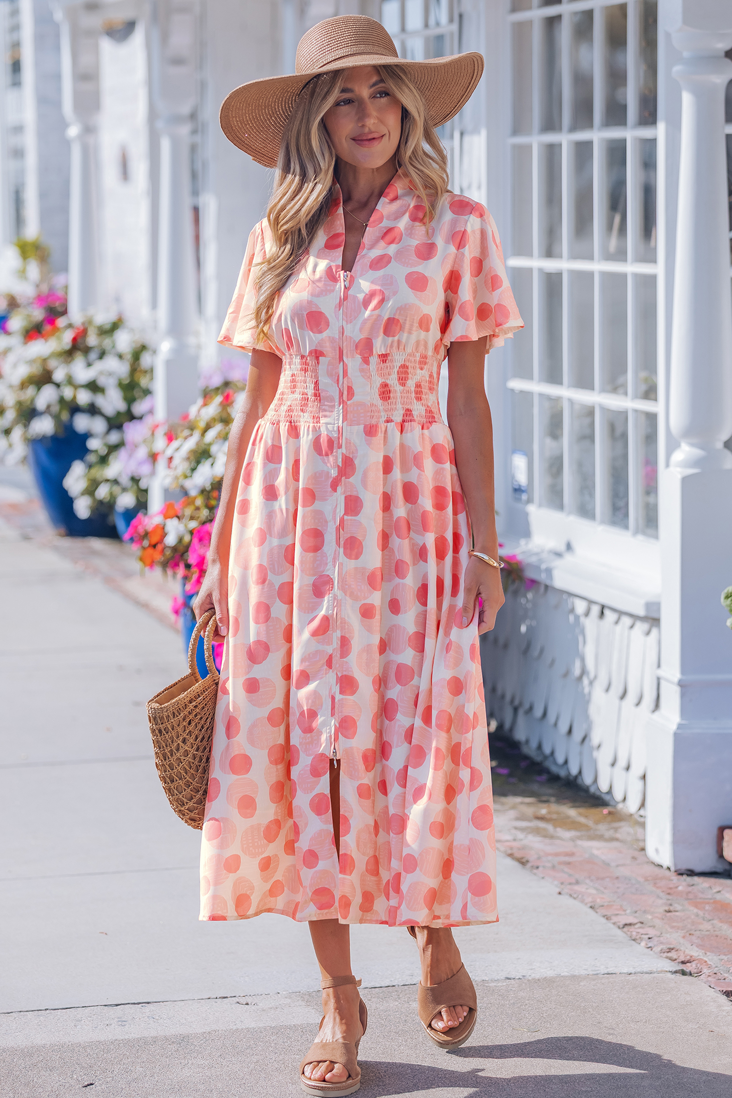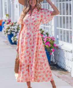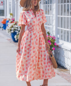 - Polka dot print long dress delivers playful charm with timeless appeal.