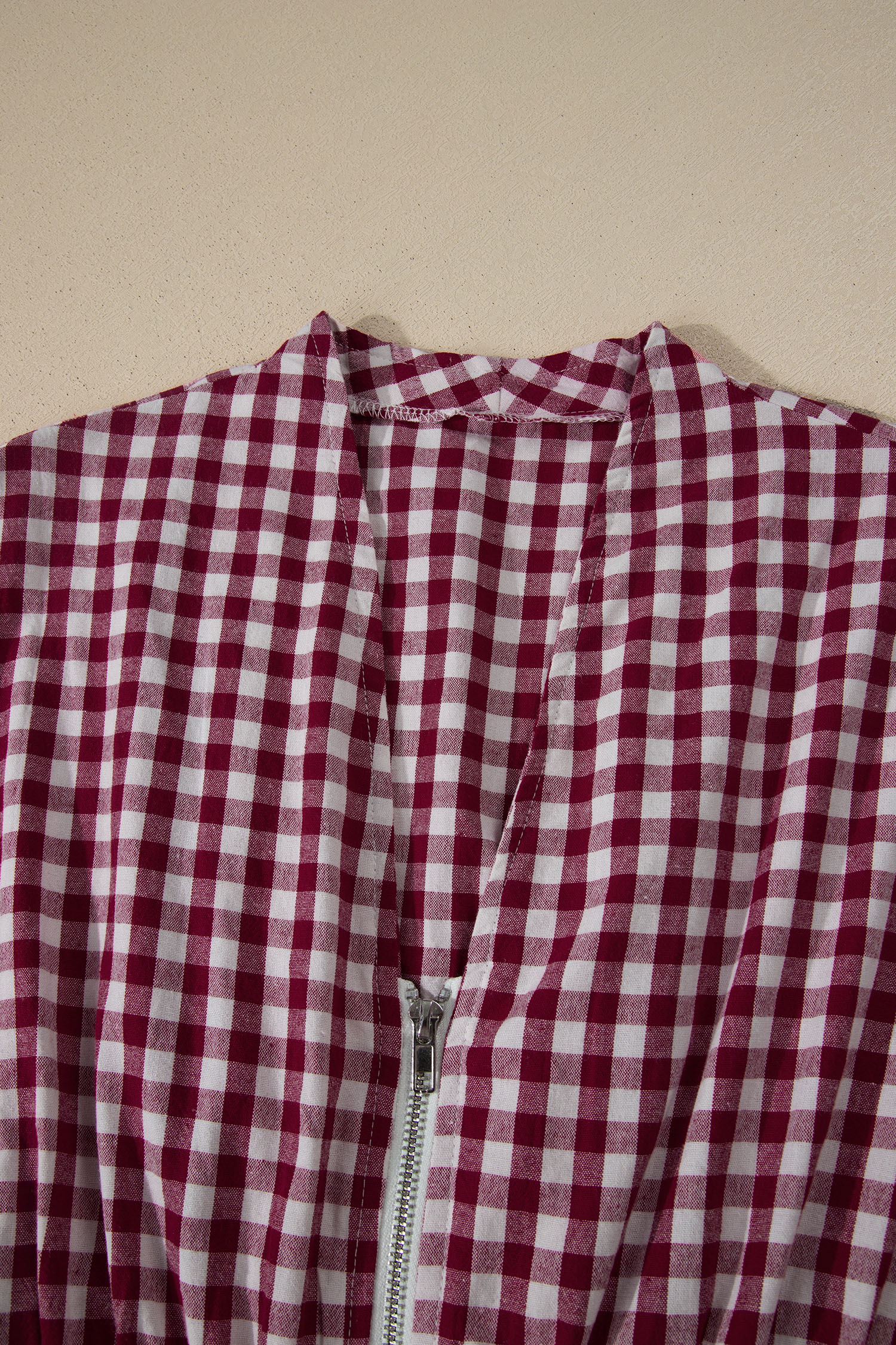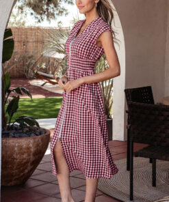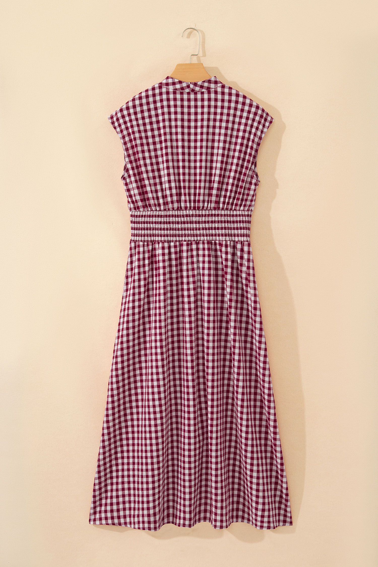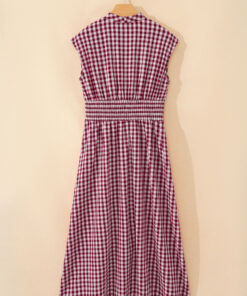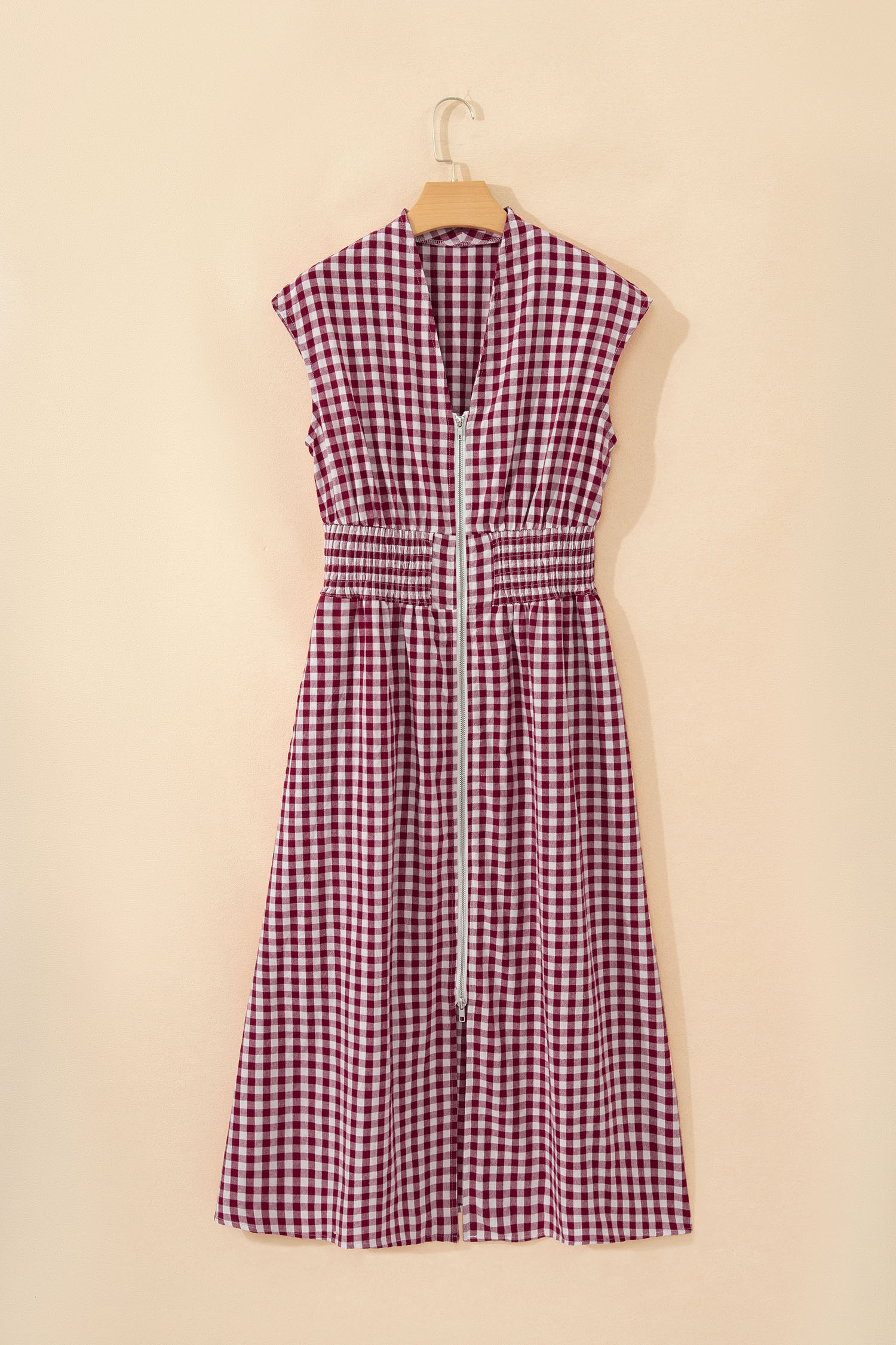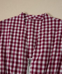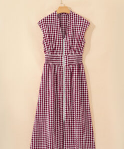 Red Plaid Print Full Zipper Cinched Waist Fit Flare Sleeveless Maxi Dress