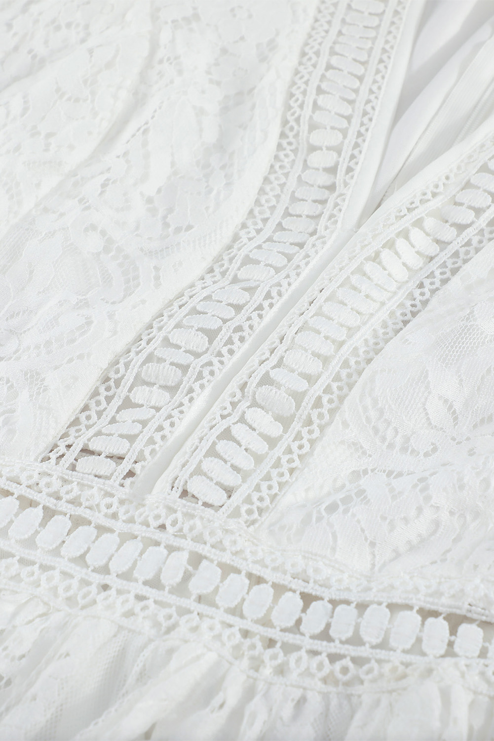 - This piece fashions a sheer crochet waistband and soft scalloping for a romantic touch